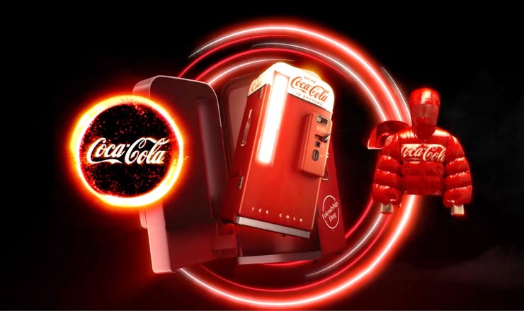 可口可樂就透過把經典的品牌意象:可口可樂小冰庫、LOGO夾克、1948年發行過的卡牌、甚至可樂開罐倒到杯子裡和冰塊混合發出嘶嘶的「聲音」,都變成了NFT販售,部分品項也進軍Decentraland元宇宙,讓持有者在裡面使用。